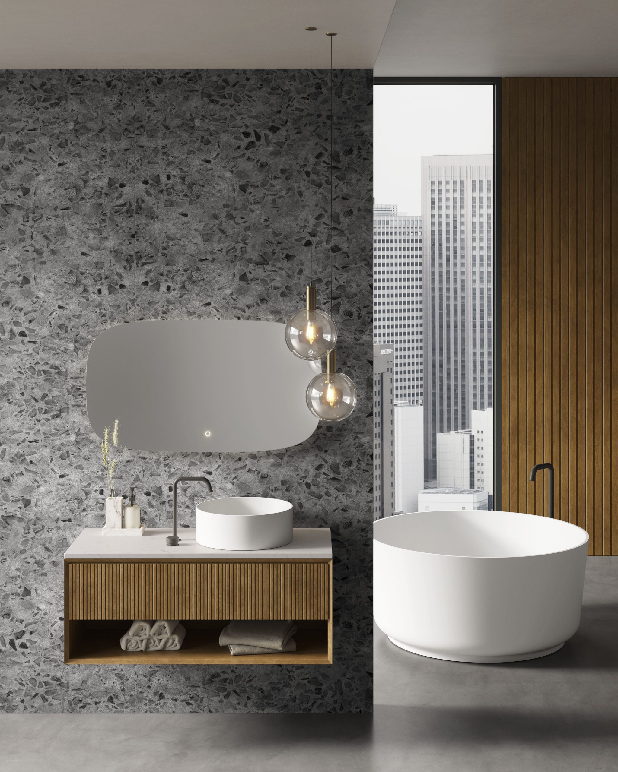 La Taal combina líneas modernas con un confort excepcional, creando una atmósfera de lujo cotidiano. Fabricada con Nuovvotouch, destaca por su estética impecable y su suavidad al tacto, ofreciendo una sensación de relax absoluto. Una bañera exenta que se convierte en el punto focal de la estancia.